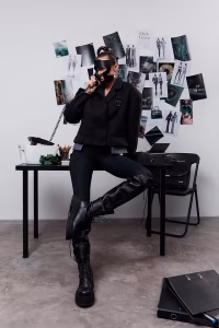 Сучасне та спокусливе боді з еластичного біфлексу — маст-хев у гардеробі. Завдяки щільному приляганню воно формує ідеальний силует, а висока горловина додає вишуканості. Родзинка моделі — вбудовані рукавички з потайними блискавками, що додає функціональності й акценту в деталях.