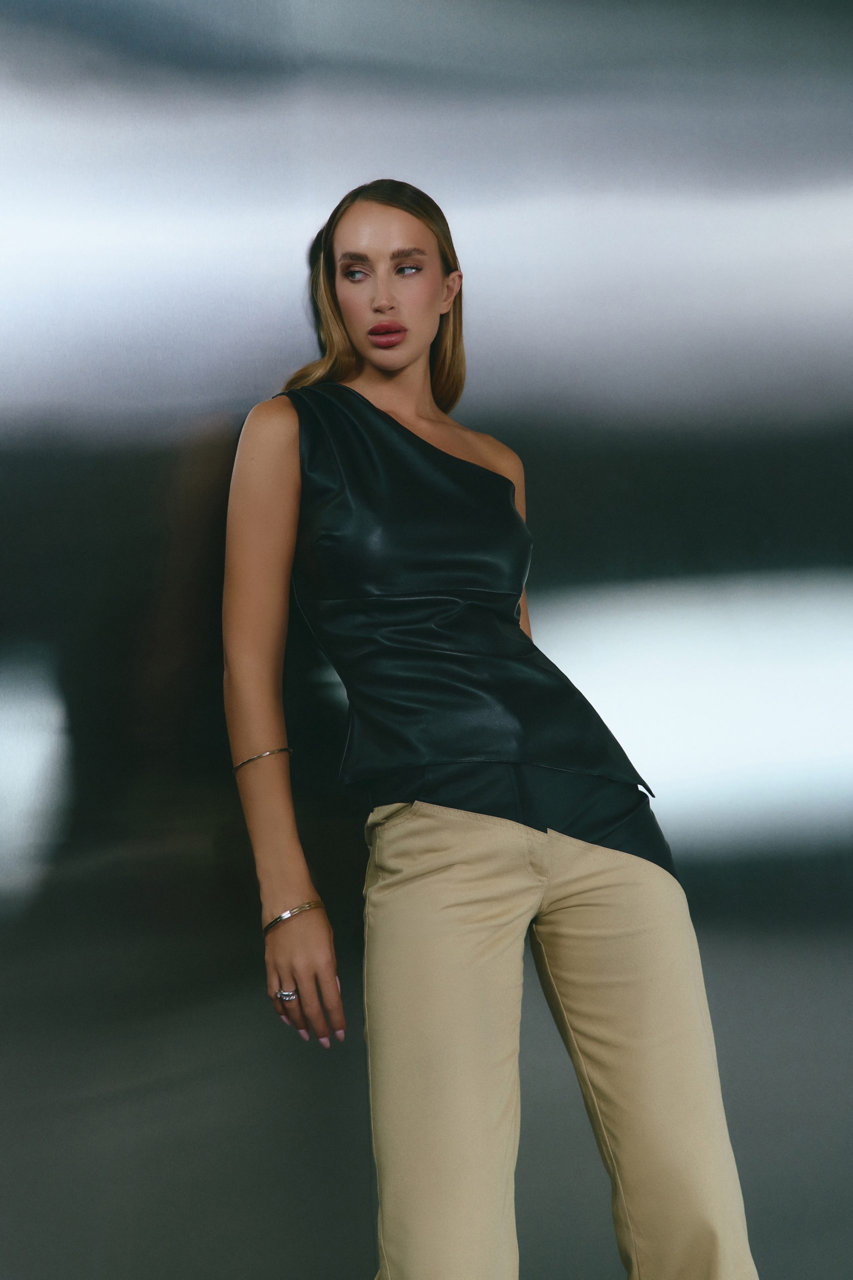 Топ створений з еко шкіри, що застібається завдяки замочці «zip». Рукавички не йдуть у комплекті до топу, їх можна придбати окремо.