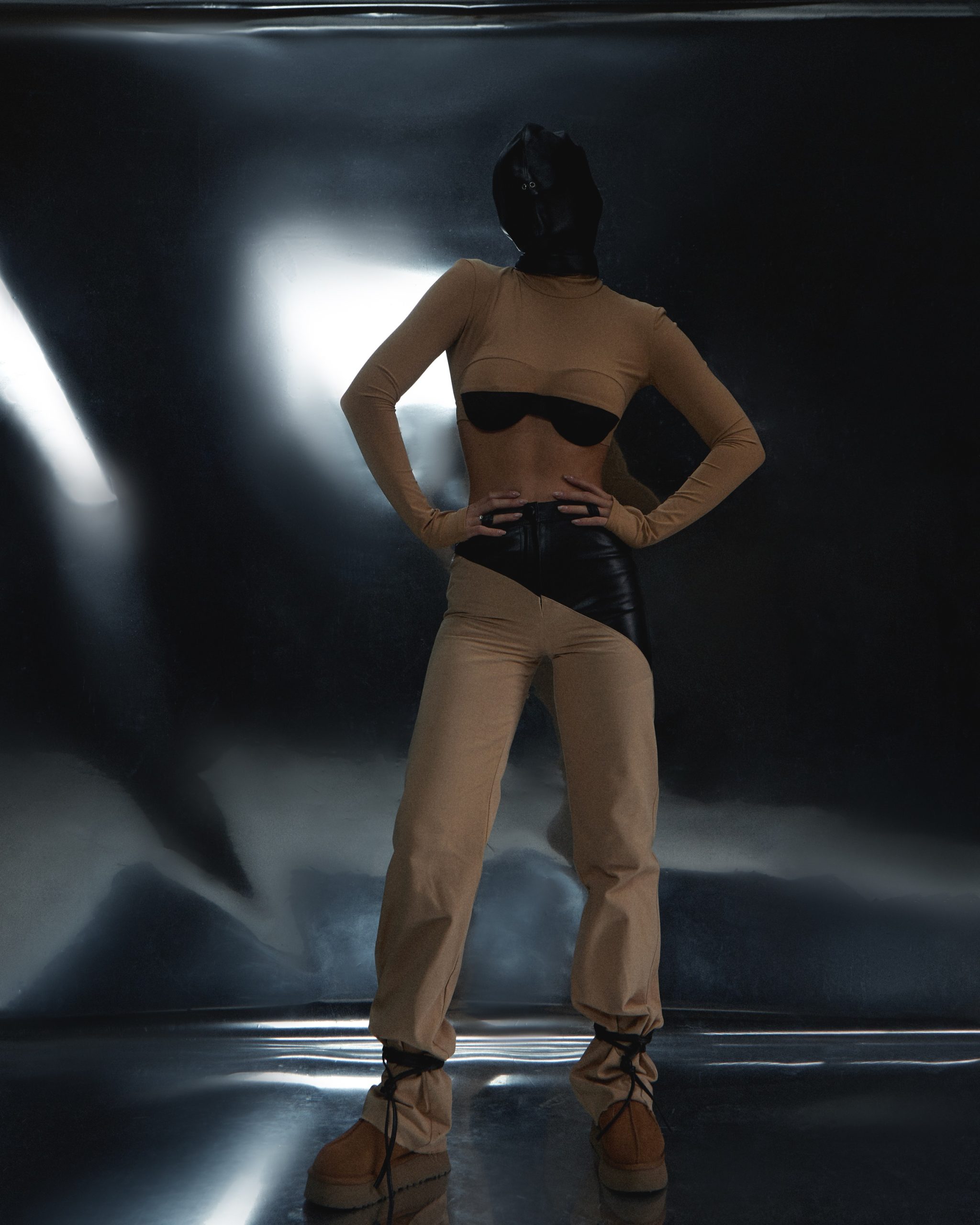 Топ із високою горловиною та довгими рукавами має вбудовані кісточки, які забезпечують надійну підтримку грудей, без push-up.